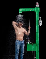 Green Heat Traced Freeze-Resistant Safety Eyewash station with Top Inlet